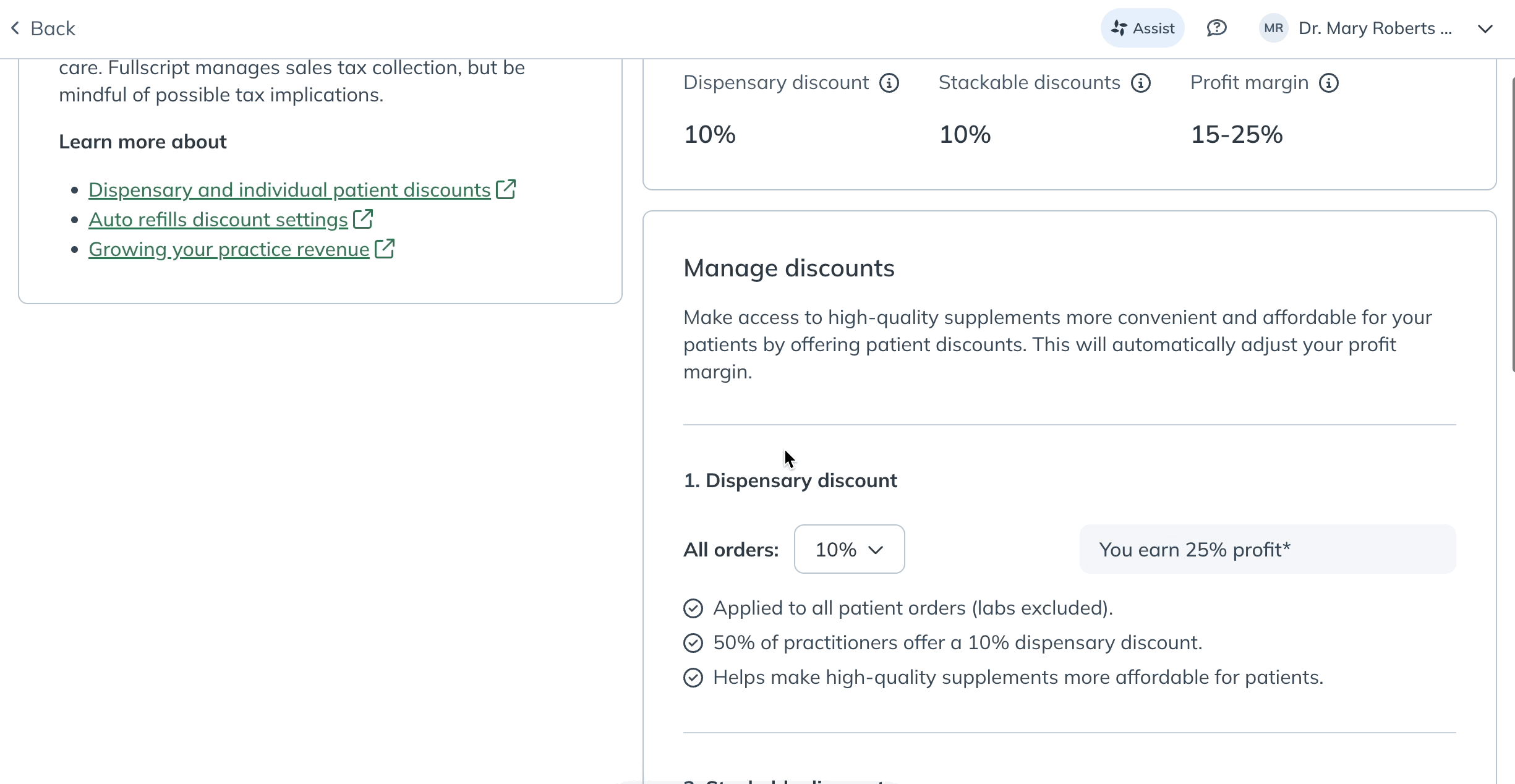 - Review the selected discount and the profit you’ll earn. Click Save to apply your changes. Discounts update for patients right away and won’t affect past orders.