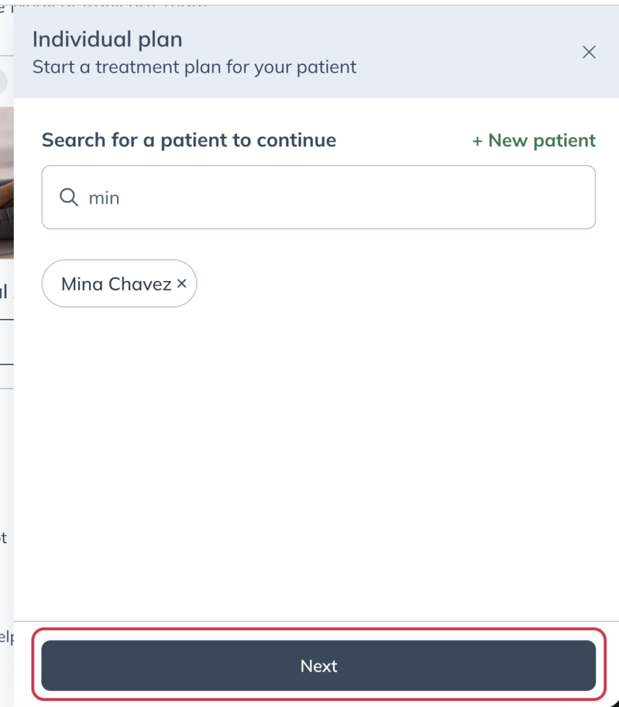 - Select the patient’s name and click Next.