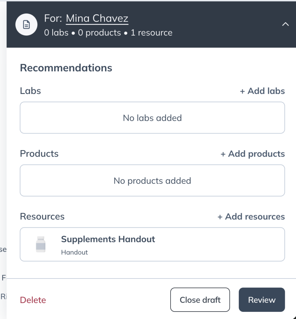 To attach Fullscript resources to a patient’s plan: