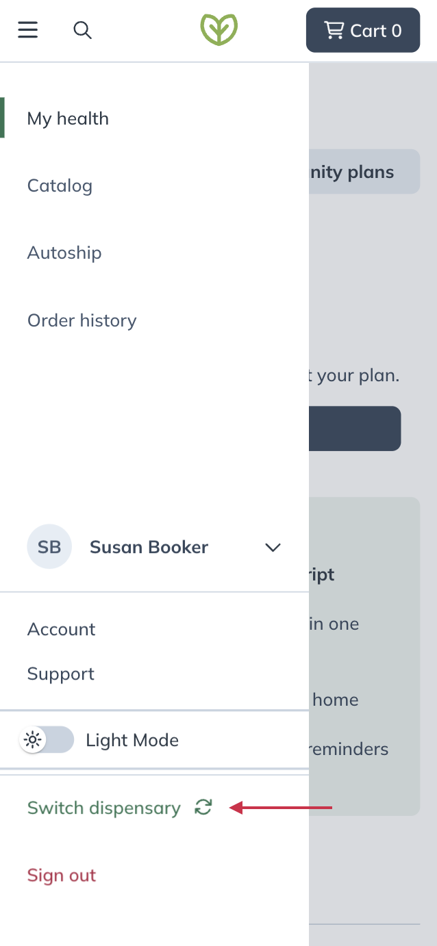 You can only toggle between dispensaries if you have multiple accounts linked to a single email address. If you have multiple accounts and the Switch dispensary option isn’t available, other accounts may have been created using a different email address. We recommend checking your email inboxes and reviewing your invites, as you may need to log in using a different email address.